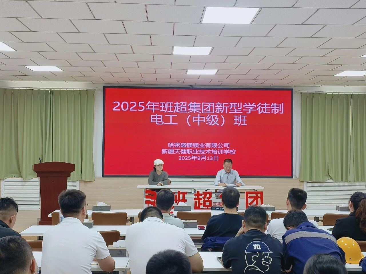 9月13日上午,班超集團聯合新疆天健職業技術培訓學校在盛鎂鎂業三樓會議室舉辦新型學徒制電工(中級)班培訓活動,旨在通過系統的知識講解,幫助員工夯實電工專業理論基礎,筑牢職業技能發展根基,共計60余人參加此次培訓。  企業新型學徒制培訓是按照“政府引導、企業為主、院校參與”的原則,采取“企校雙制、工學一體”“雙師帶徒、交替培養”的一種新型學徒培養機制。企業新型學徒制培訓對于班超集團優化高技能人才培養機制,加快建設知識型、技能型、創新型人才隊伍,加快企業青年技能人才的培養具有重要意義。培訓內容涵蓋中級電工必備的電氣控制基礎、電機與變壓器原理、電力系統基本知識等核心模塊,為員工打造系統的理論提升平臺。 下一步,班超集團將繼續為廣大員工搭建學習提升平臺,通過舉辦高質量、多元化的職業培訓,提高員工技能水平和職業素養,加快公司高技能人才梯隊建設,助推企業高質量發展。 On the morning of 13 September, Banchao Group, in partnership with Xinjiang Tianjian Vocational & Technical Training School, launched a new-style apprenticeship programme for intermediate electricians on the third-floor conference room of Shengmei Magnesium. The initiative delivers systematic lectures designed to consolidate employees’ theoretical grounding in electrical work and lay a solid foundation for vocational growth; more than 60 staff members attended. The enterprise-based apprenticeship model follows the principle of “government guidance, enterprise leadership, institutional participation” and adopts a dual-track, work-integrated format in which company mentors and college instructors coach apprentices in alternating phases. For Banchao Group, the scheme is a key lever for refining its high-skilled-talent pipeline, accelerating the build-up of a knowledgeable, skilled and innovative workforce, and fast-tracking the development of young technicians. The curriculum covers core modules required for the intermediate-electrician credential—fundamentals of electrical control, principles of motors and transformers, and essential power-system knowledge—providing employees with a comprehensive theoretical upgrade platform. Next, Banchao Group will continue to expand learning opportunities for its workforce through high-quality, diversified vocational training, raising skill levels and professional competence, speeding up the construction of a high-skilled-talent echelon, and propelling the company toward high-quality development.